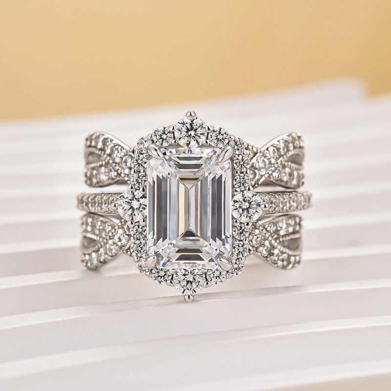 3.5Ct Emerald Cut Halo Engagement Ring With Engagement Ring Enhancer