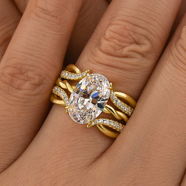 Romantic 4.0Ct Oval Cut Twist Engagement Ring with Enhancer Wedding Band For Woman In Sterling Silver