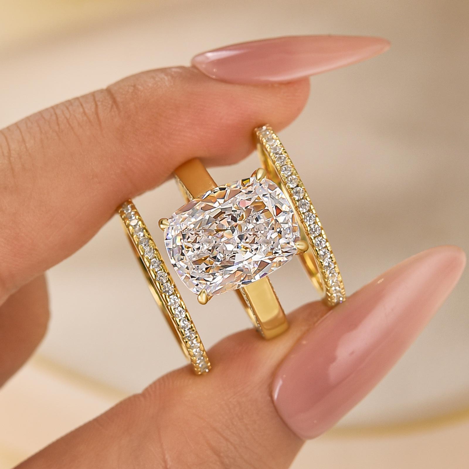 3PC Wedding Ring Set 8.0Ct Cushion Cut Solitaire Engagement Ring With Classic Eternity Wedding Band