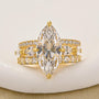 This 4.0-carat marquise cut wedding ring set captures the elegance of timeless romance with a modern edge. The elongated marquise center stone symbolizes vision and hope, while the matching marquise and round-cut band mirrors its brilliance—creating perfect harmony and balance. Set in warm 18K yellow gold, the design radiates sophistication and confidence, celebrating a love that shines boldly and beautifully from every angle.