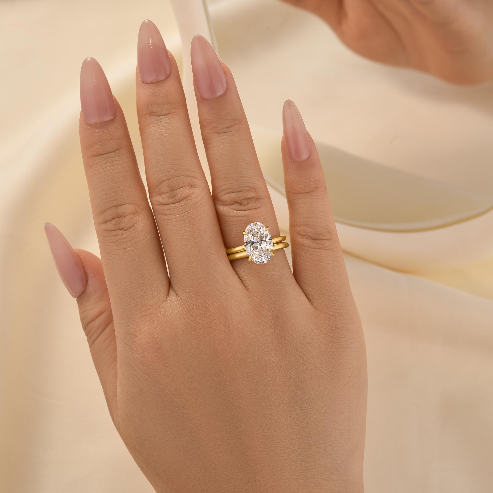 Design Inspiration: Inspired by timeless romance and effortless elegance, this 2PC 4.0Ct oval-cut solitaire set celebrates beauty in its purest form. The elongated oval gemstone radiates soft brilliance, symbolizing a love that feels graceful, confident, and enduring. Paired with a perfectly contoured band, the design creates a harmonious silhouette that enhances comfort and shine. Together, they reflect a promise made to last — refined, meaningful, and beautifully everlasting.