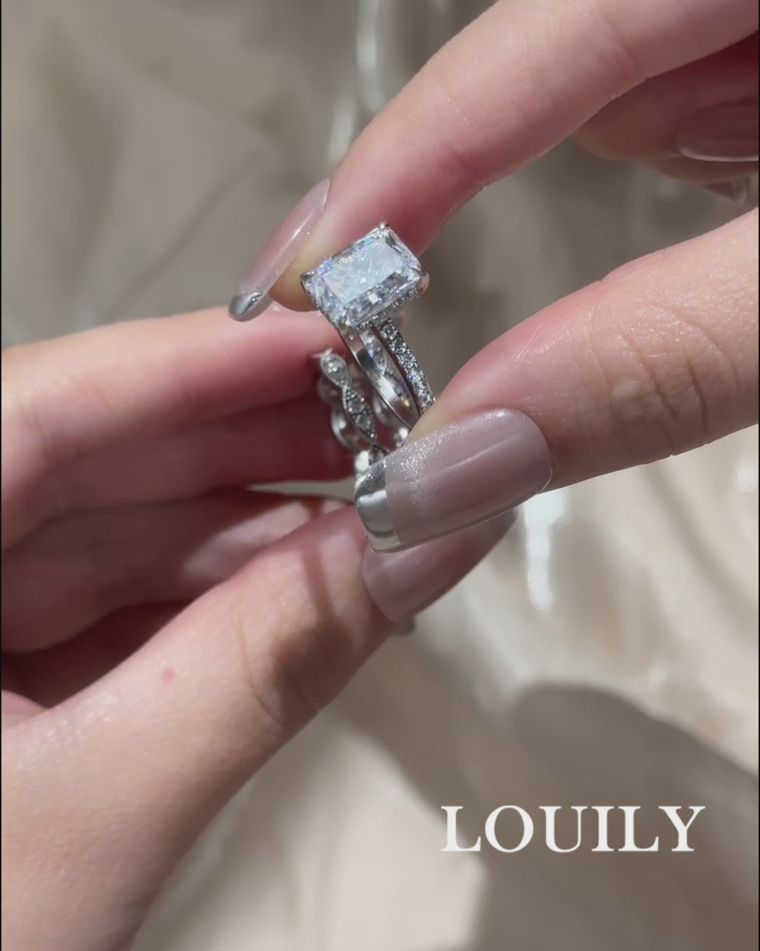 Louily Elegant 2PC 3.5Ct Radiant Cut Wedding Ring Set For Women In Sterling Silver
