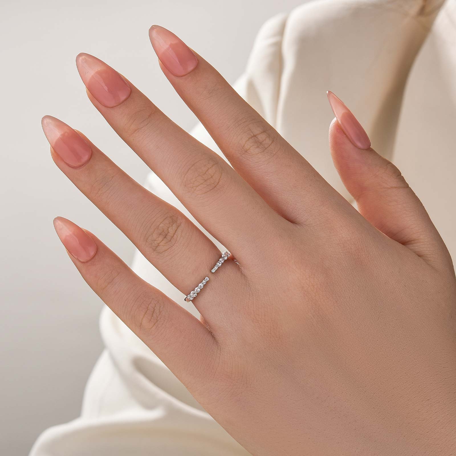 Inspired by modern minimalism and everyday elegance, this open-ended diamond band features sparkling round-cut simulated diamonds set in a sleek, adjustable silhouette. The open design creates a light, contemporary look while enhancing comfort and versatility. Crafted in premium 925 sterling silver with a high-polish finish, this ring is perfect for stacking, pairing with engagement rings, or wearing alone as a delicate statement. Ideal as a promise ring, travel ring, or gift for women who love refined sparkle and effortless style.