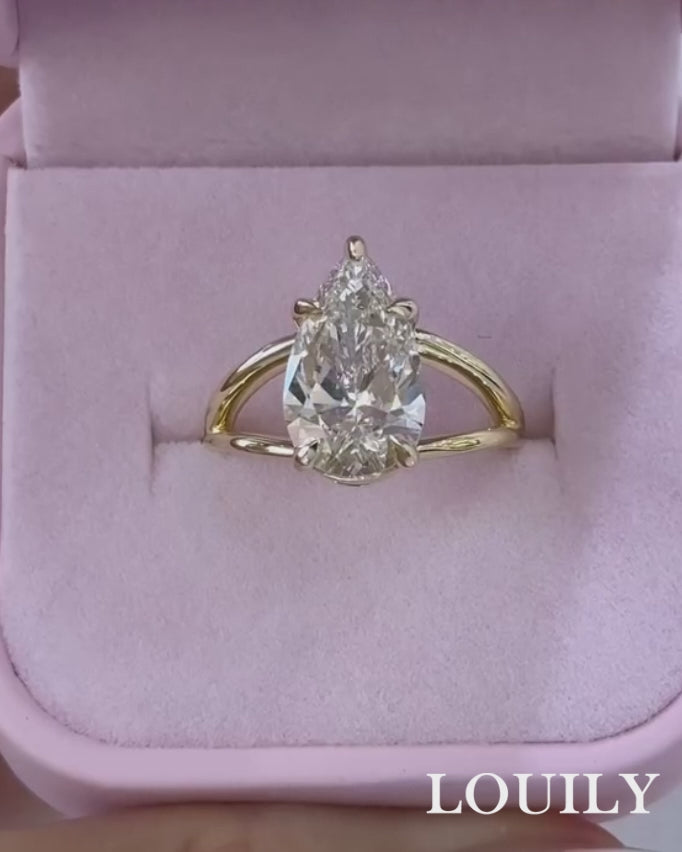 Louily Yellow Gold Split Shank Pear Cut Engagement Ring In Sterling Silver