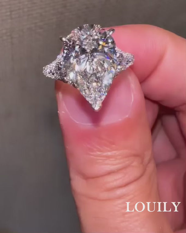 Louily Luxury 5.5Ct Pear Cut Engagement Ring