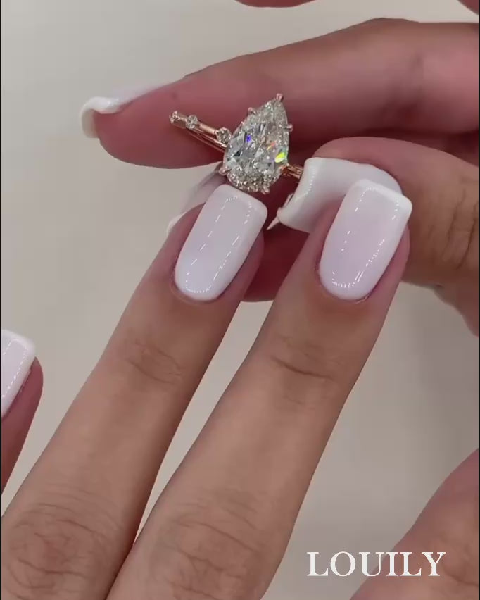 This 4.0Ct pear cut solitaire engagement ring shines with understated sophistication, set on a sleek sterling silver band that highlights the graceful teardrop silhouette. The solitaire design lets the pear cut stone take center stage, creating a look that is both modern and timeless.