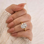This 5.5 carat cushion-cut engagement ring features a hidden halo that subtly enhances the stone’s radiance without overpowering its classic shape. Designed for travel yet crafted with exquisite attention to detail, it blends luxurious sparkle with modern sophistication—perfect for the woman who loves timeless style with a bold touch.