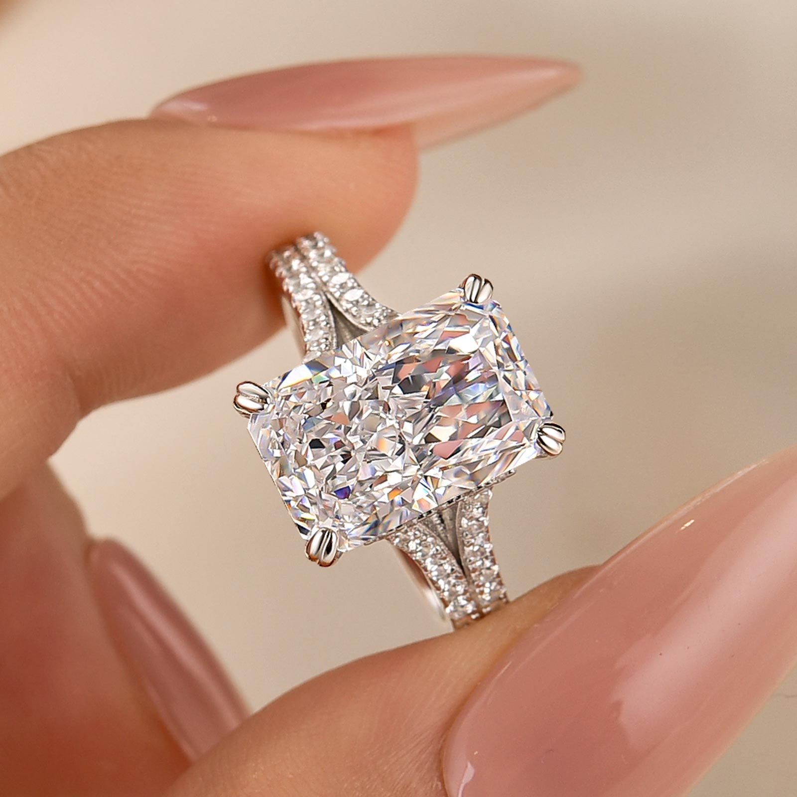 5.5Ct Radiant Cut Side Stone Engagement Ring Travel Ring In Sterling Silver
