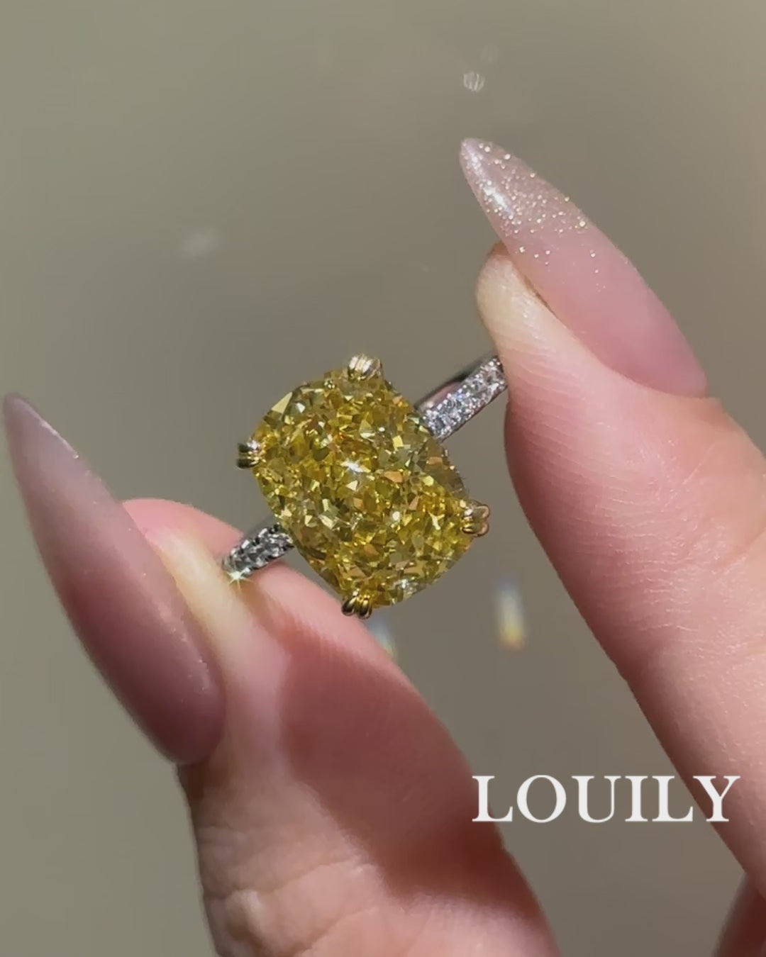 Discovering the perfect fusion of sophistication and modern design,this yellow stone elongated cushion cut ring is crafted from premium sterling silver.This exquisite piece features a stunning, intricate band that elegantly wraps around the finger. The sleek, polished finish exudes a sense of refined luxury, while the delicate detailing adds a touch of artistry to the classic design.At the heart of the ring lies a beautifully set stone that catches and reflects the light with every movement, creating a mesmerizing visual effect.