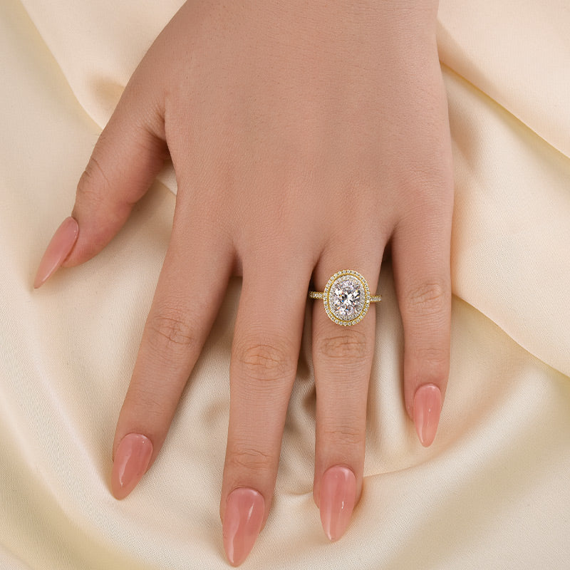 Louily Beautiful Double Halo Oval Cut Yellow Gold Engagement Ring