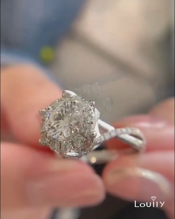 Louily Noble 1.0 Carat Moissanite Halo Round Cut Engagement Ring