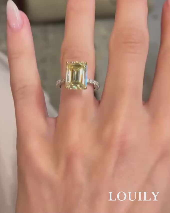 3.5Ct Emerald Cut Yellow Two-Tone Engagement Ring In Sterling Silver