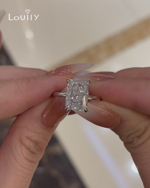 Louily Elegant Radiant Cut Engagement Ring In Sterling Silver