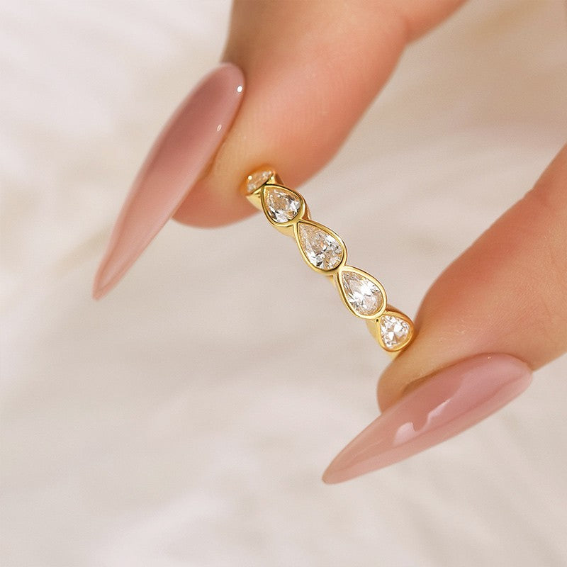 2.1Ct Luxe Pear Cut Bezel Wedding Band In Sterling Silver