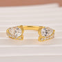 This 1.0Ct Pear Cut Yellow Gold Open Wedding Band in Sterling Silver offers a fresh and modern twist on a timeless style. The open design showcases delicate pear-cut stones accented with a warm yellow-gold finish, creating a soft yet eye-catching contrast against the sterling silver band. Perfect for stacking with engagement rings or wearing alone, this band combines subtle sparkle with everyday elegance.