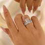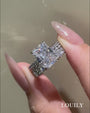 This 3PC 4.5Ct radiant cut wedding ring set showcases a brilliant radiant cut engagement ring, paired with two classic wedding bands that enhance its elegance without overpowering its shine. The clean lines and balanced design create a look that is both sophisticated and enduring.