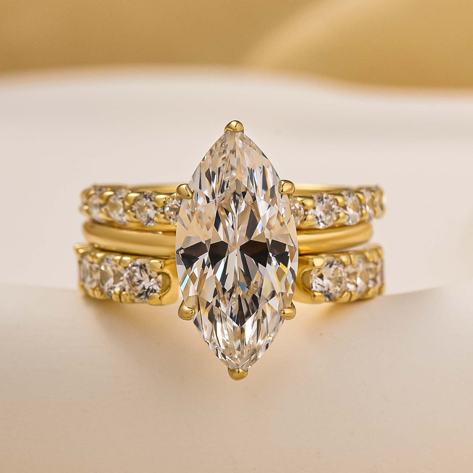 4.0Ct Solitaire Marquise Engagement Ring with 2PC Yellow Gold Open Pavé Wedding Band