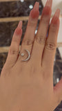 The stunning Crescent Moon & Star Sterling Silver ring provides the perfect accentuation of glam to your hands! Its open adjustable design allows you to wear this ring on different fingers to create different looks, so your hands can dazzle in a multitude of ways.