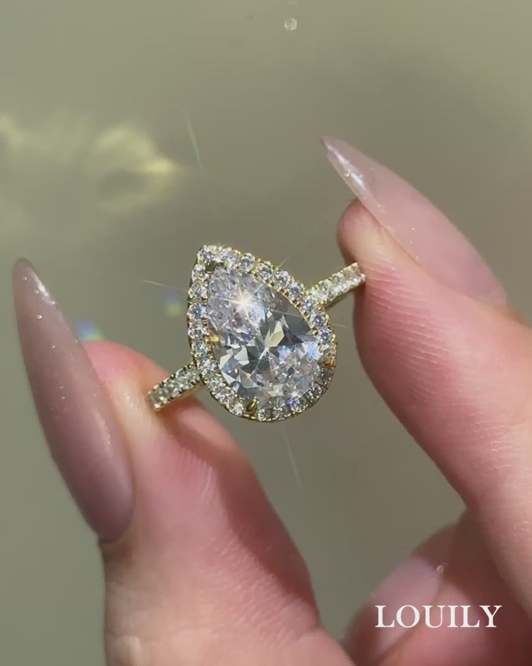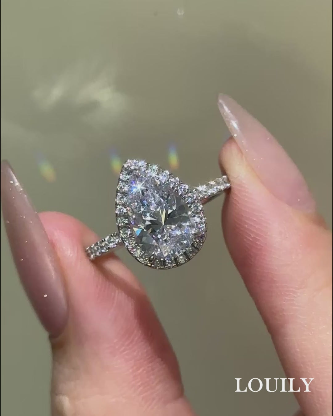 Louily Halo Pear Cut Engagement Ring In Sterling Silver