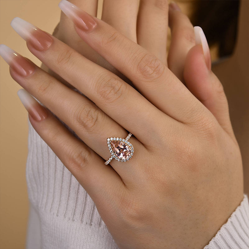 Louily Rose Gold Halo Pear Cut Synthetic Morganite Engagement Ring