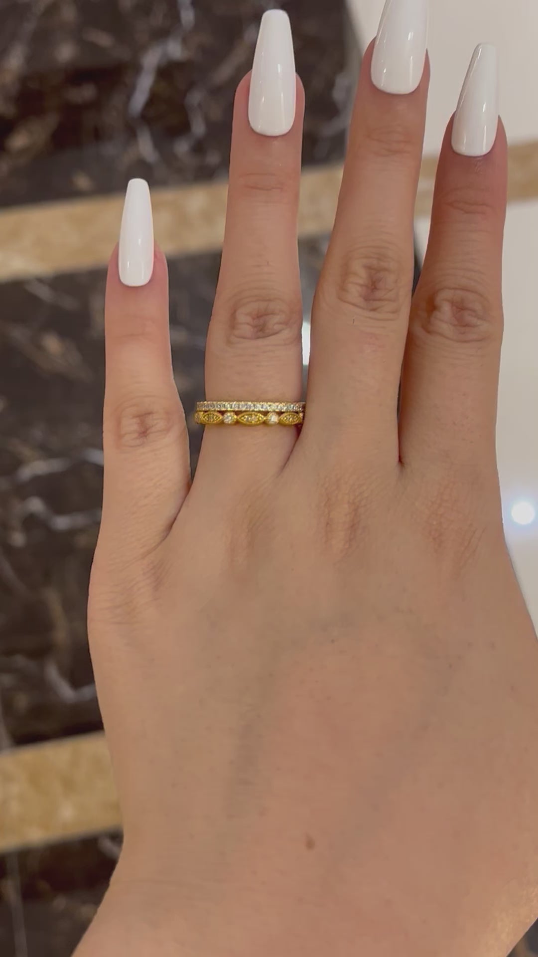Louily Yellow Gold Full Eternity Art Deco Stackable Wedding Band Set