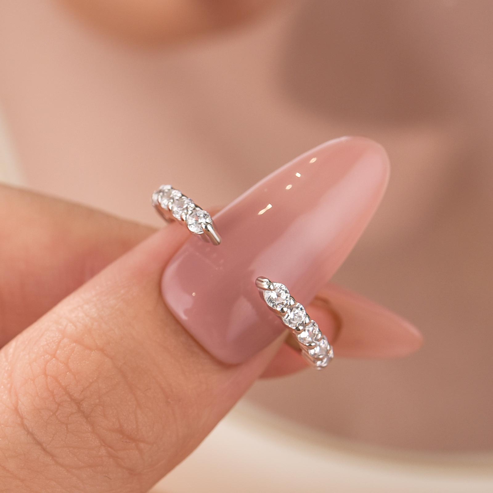 This 0.7Ct open wedding band in sterling silver features a sleek and minimal design that wraps gently around the finger, creating a timeless look with a contemporary edge. The delicate sparkle adds just the right touch of brilliance without overwhelming.