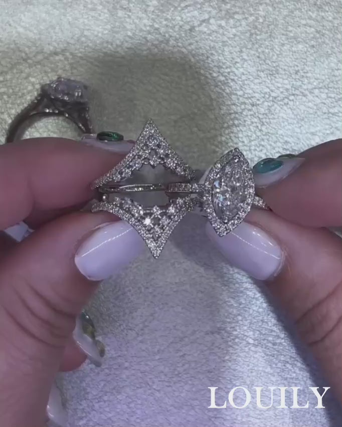 3.0Ct Halo Marquise Cut Insert Wedding Ring Set With Luxe Engagement Ring Enhancer