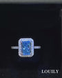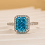 This travel-friendly ring highlights a dazzling 3.0Ct radiant-cut center stone surrounded by a delicate halo, all beautifully set in polished sterling silver. The combination of the radiant cut and halo detailing creates an eye-catching brilliance while maintaining a lightweight, comfortable design—ideal for adding elegance wherever you go.