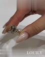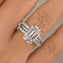 This 3PC set features a striking 5.0Ct emerald cut center ring paired with two open wedding bands that frame the main piece gracefully. The emerald cut stone offers a clean, elongated brilliance, while the open bands add an airy, modern feel that enhances the overall look.