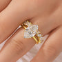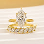 It paired with an elegant Eternity Wedding Band is designed to turn every moment into a celebration. The elongated marquise cut center stone adds a refined, vintage-inspired elegance, while the brilliant facets create a striking sparkle that makes this ring truly unforgettable.