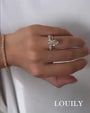 Complementing it perfectly is the eternity band—encircling the finger in a seamless row of shimmering stones, symbolizing everlasting love and commitment. Whether worn together as a set or styled individually, these rings bring effortless beauty and sophistication to your everyday look.