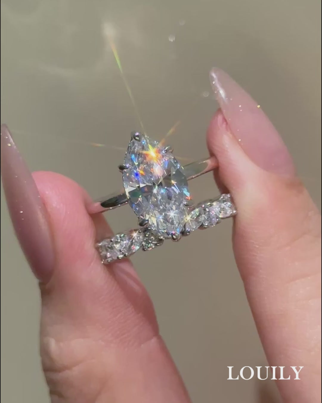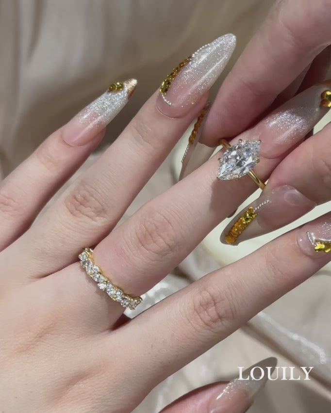 This ring set was designed for the woman who embraces distinctive style and timeless beauty, showcasing a stunning 4.0 carat marquise cut center stone that elongates and flatters the finger. Paired with a wedding band featuring both marquise cut and round cut stones, it creates a harmonious blend of shapes and brilliance. Perfect as a wedding set or elegant travel rings, it can be worn together for a striking statement or styled separately for versatile looks.