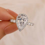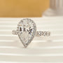 This piece showcases a 4.0-carat pear-cut center stone embraced by a shimmering halo, amplifying its brilliance from every angle. Crafted in sterling silver, it’s both elegant and durable, making it the ideal ring for celebrating love on the go without compromising on style or sparkle.