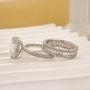 Crafted from hypoallergenic, nickel-free materials, this set offers comfort and durability for daily wear. Whether chosen for a proposal, wedding, or milestone anniversary, this emerald cut set is a striking symbol of love, elegance, and everlasting commitment.