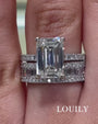 Paired with a sleek emerald cut wedding band, this set showcases harmonious symmetry and a strong yet graceful presence. The matching cuts create a seamless, polished look that feels both modern and timeless, ideal for those who appreciate understated glamour with enduring appeal.
