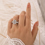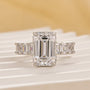 This 5.0Ct emerald cut engagement travel ring in sterling silver showcases a striking step-cut stone that radiates sophistication from every angle. The clean lines of the emerald cut create a timeless look, while the sterling silver setting enhances its brilliance with modern appeal.