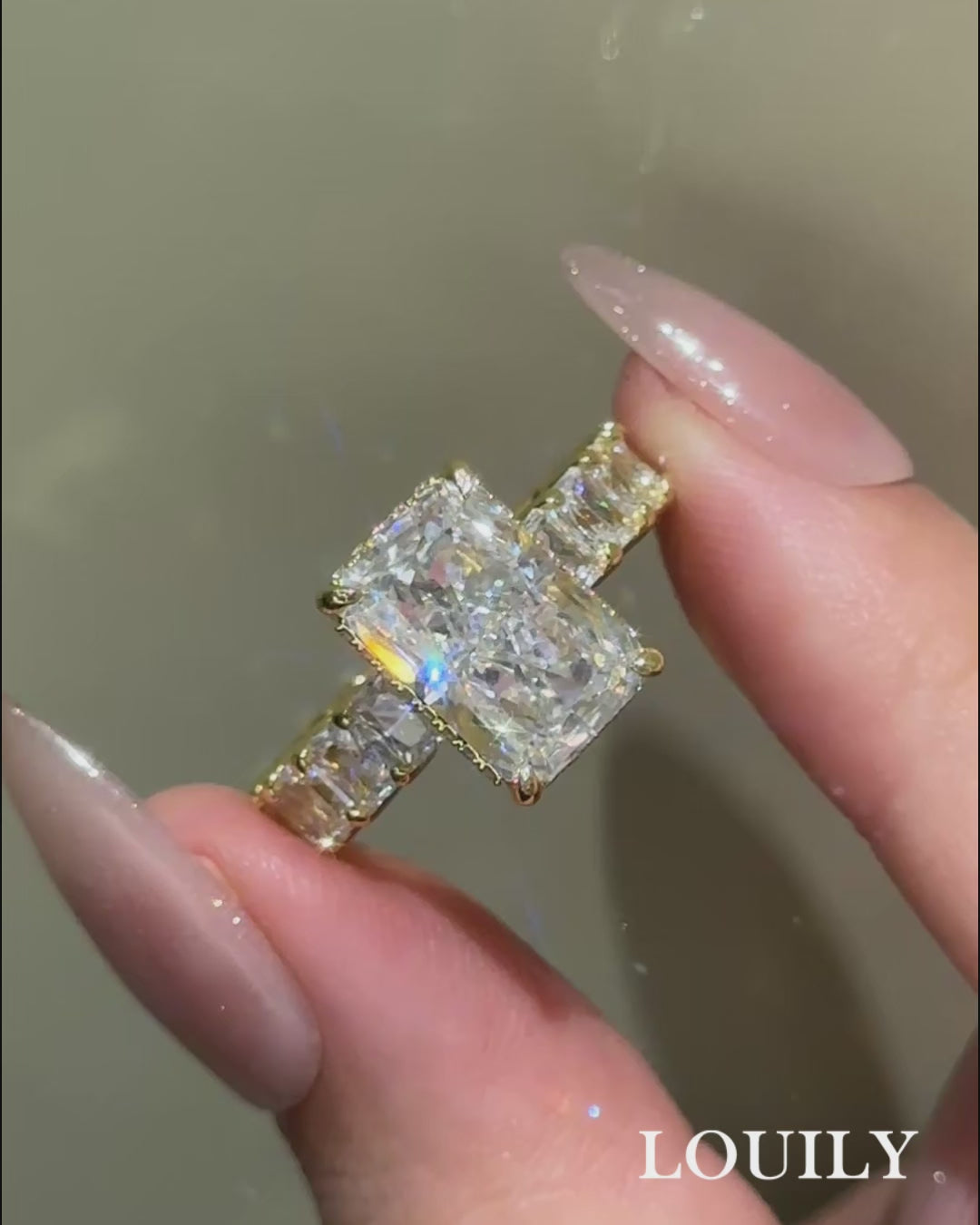 5.0Ct Radiant Cut Hidden Halo Luxe Engagement Ring In Sterling Silver