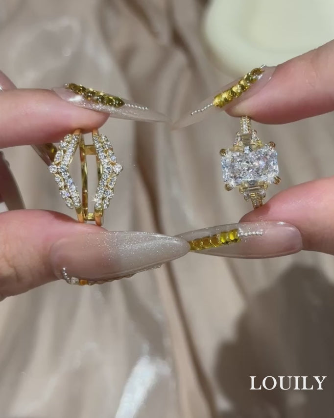 5.0Ct Radiant Cut Three Stone Wedding Ring For Her With Insert Ring