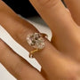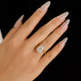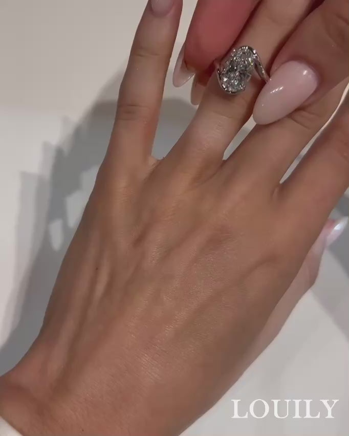 This ring was created for the woman who embraces her individuality, featuring a brilliant 4.5 carat oval cut center stone that exudes timeless beauty and radiant charm. Crafted in sterling silver, the unique design adds modern flair to a classic silhouette, making it the perfect choice as a standout engagement ring or eye-catching travel ring. Whether worn solo or paired with a band, it’s a stunning symbol of love and personal style.