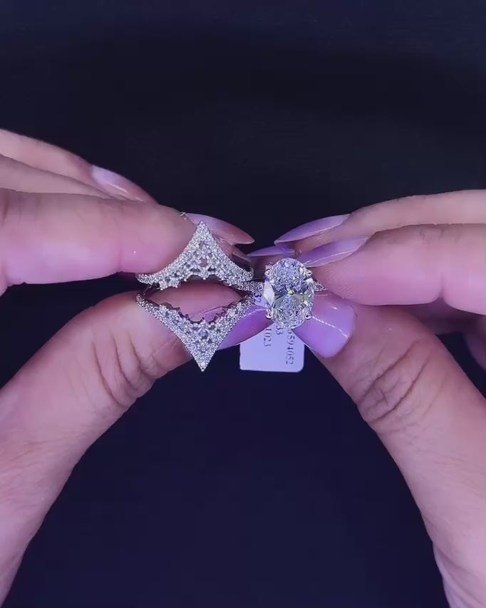 6.0Ct Oval Cut Pavé Engagement Ring with Enhancer Wedding Band