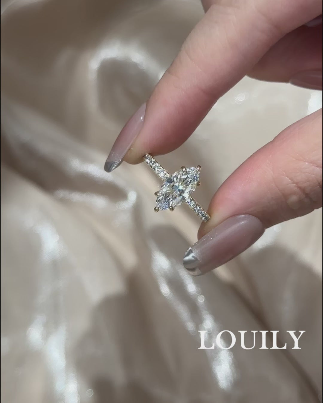 Design Inspiration:This engagement ring is inspired by the idea of love that is both timeless and extraordinary, much like the marquise-cut diamond at its heart. The marquise shape, with its elongated curves, evokes the feeling of endless possibilities and the infinite nature of a deep connection. It captures the essence of two lives coming together, forming a perfect balance between elegance and uniqueness. The 1.5ct diamond at the center sparkles with a brilliance that represents the pure and radiant energy of love—shining brightly in all directions, symbolizing the endless love that expands with every passing day.