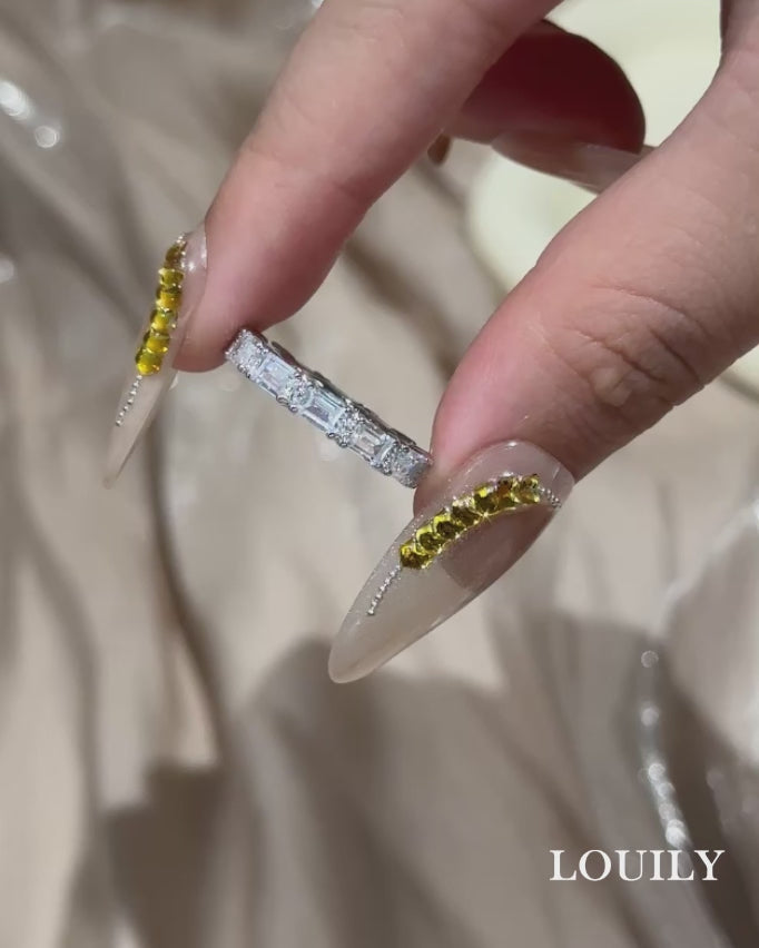 This ring was designed for the woman who embraces bold beauty with lasting meaning, featuring a continuous row of emerald cut stones totaling 3.6 carats for a refined, symmetrical sparkle. Crafted in sterling silver, this eternity band offers a sleek, modern look that’s perfect as a wedding band, anniversary gift, or stacking piece. Whether worn alone or paired with other favorites, it’s a graceful reminder of love that never ends.