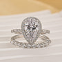 Louily 2PC Classic Halo Pear Cut Wedding Ring Set With Classic Wedding Band