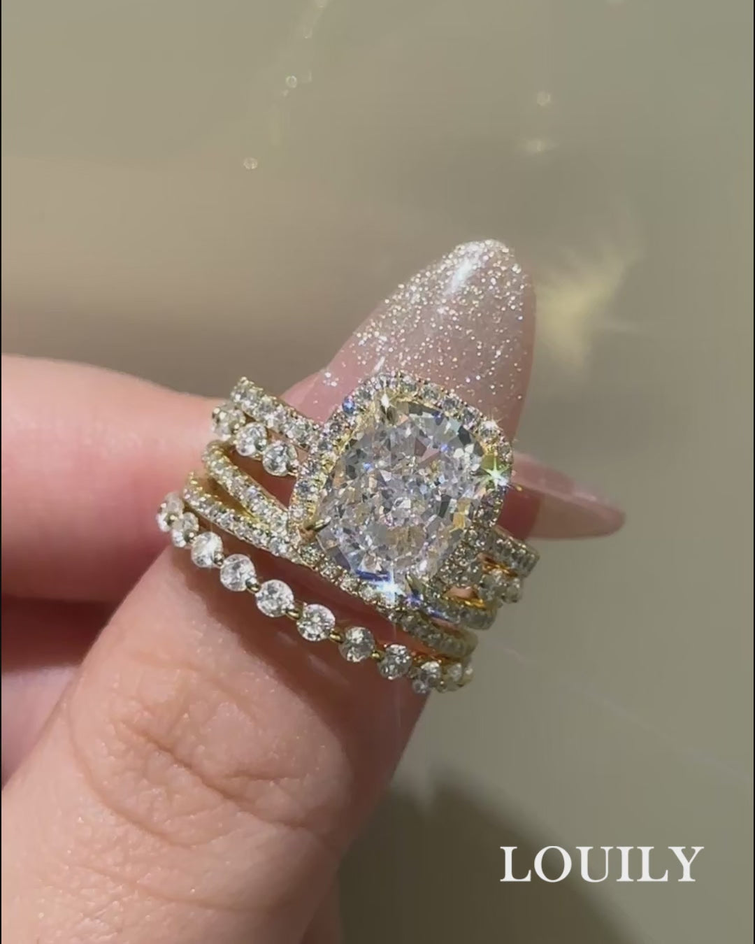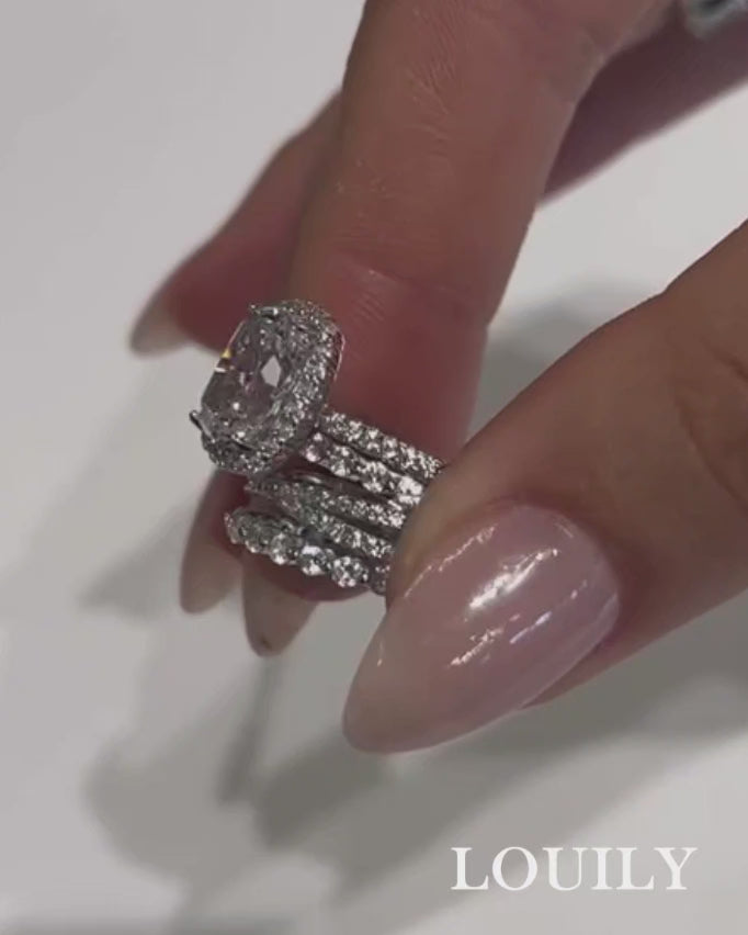 Louily 4PC Luxurious Halo Cushion Cut Women's Wedding Set