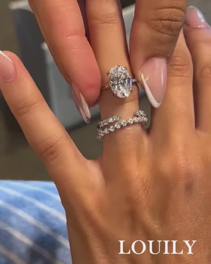 Louily 4PC Oval Cut Wedding Ring Set With Open Wedding Band