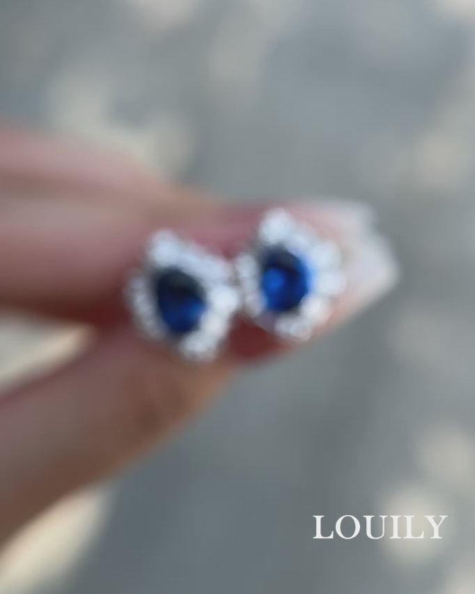 Louily Blue Stone Halo Oval Cut Women's Earrings