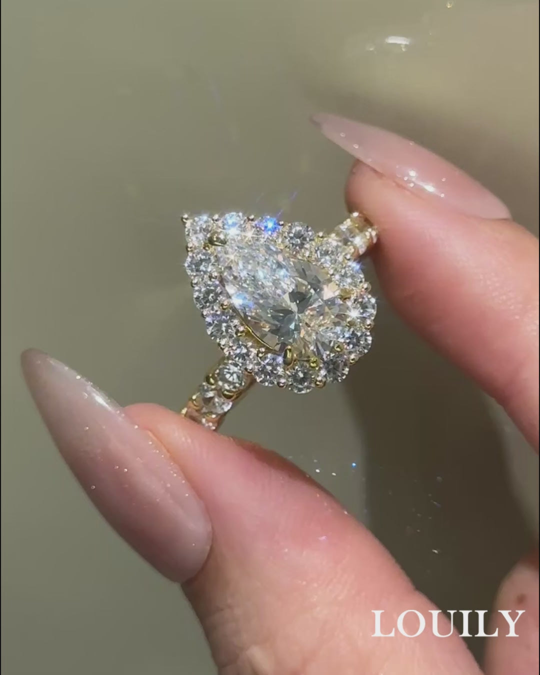Louily Classic Halo Pear Cut Engagement Ring In Sterling Silver