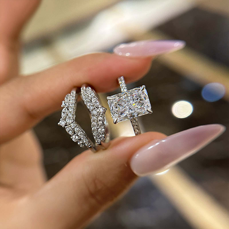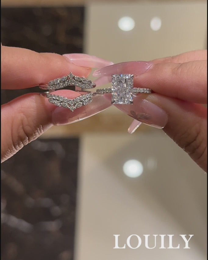 Louily Elegant Radiant Cut Insert Wedding Ring Set For Women In Sterling Silver