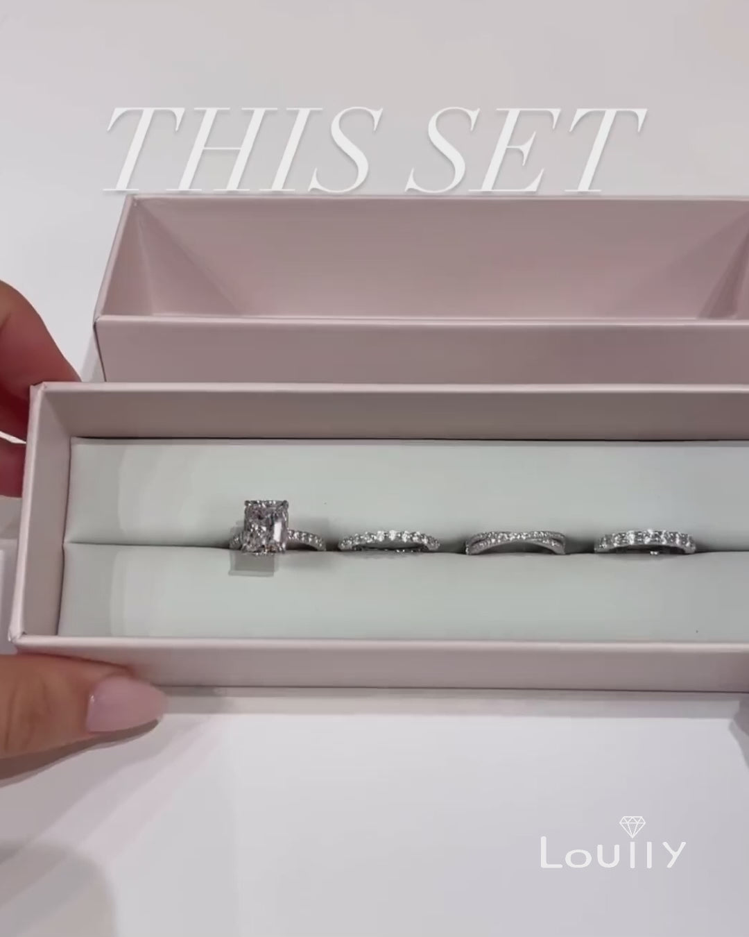 Louily Excellent Crushed Ice Radiant Cut 4PC Wedding Ring Set