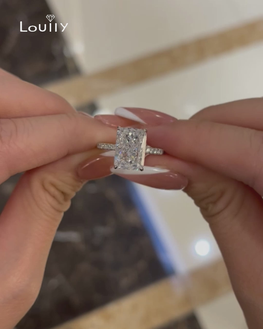 Louily Exclusive 8*11mm Radiant Cut Engagement Ring For Women In Sterling Silver